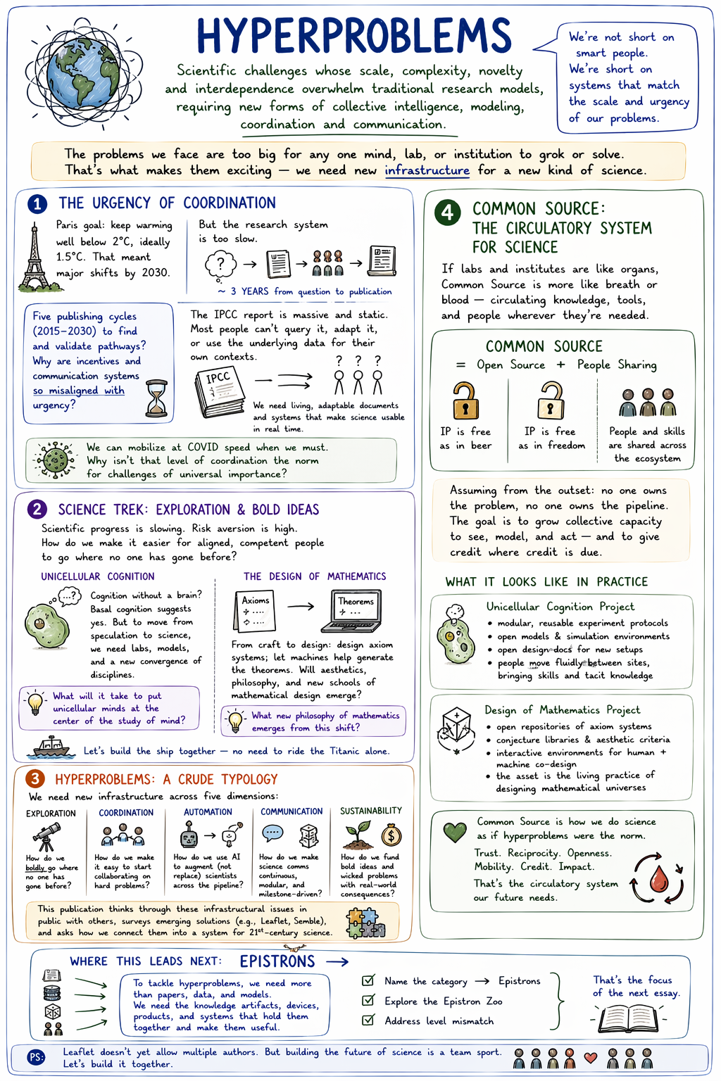 Modern science produces papers en masse because we settled on the peer-reviewed paper as the canonical unit and built incentives around that unit. But that’s a monoculture of knowledge artifacts at a time when we need diversity: we can’t address hyperproblems with only one kind of knowledge artifact attracting social capital.